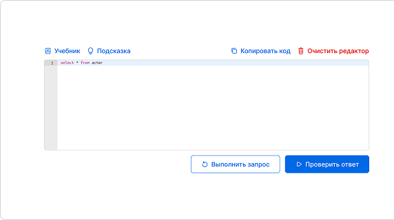Solve various SQL tasks directly in the browser. No need to install additional programs or set up an environment. - Variety of databases